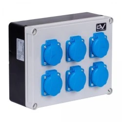 - 6 x 1 fazowe (z bolcem ochronnym): 1P + N + PE, 16 A, 230 V
