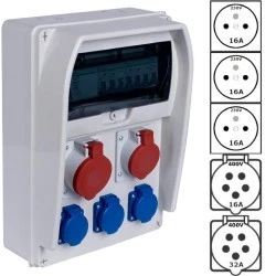 Produkt znajduje zastosowanie wszędzie tam, gdzie potrzebny jest szybki dostęp do różnych typów przyłączy — zarówno do urządzeń trójfazowych 32A i 16A, jak i standardowych odbiorników 230V — przy zachowaniu ochrony instalacji i użytkowników.