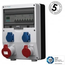 Obudowa rozdzielnicy ilość modułów 12 ilość rzędów 1 montaż natynkowy stopień ochrony obudowy IP65 napięcie znamionowe obudowy 1000V wymiary obudowy 360 x 260 x 125 mm materiał obudowy technopolimer materiał drzwi poliwęglan kolor przedniej płyty obudowy szary RAL 7035 kolor tylnej płyty obudowy czarny materiał śrub stal nierdzewna materiał uszczelki guma EPDM dławnica PG dołączona w zestawie 1x PG-16 certyfikaty i normy CE CEI-23-48/49 IEC 670 Gniazda i aparatura modułowa gniazda siłowe 1 x 32A 5P 400V IP44 czerwone Typ 3451 Mennekes 1 x 16A 5P 400V IP44 czerwone Typ 1385 Mennekes zabezpieczenie nadprądowe gniazd siłowych SIEMENS 1 x C32 3P 6kA 1 x C16 3P 10kA gniazda 230V 2 x 230V 16A Mennekes 11011 IP54 2P+E Niemiecki system Schuko zabezpieczenie nadprądowe gniazd 230V SIEMENS 2 x C16 1P 10kA szyna łączeniowa 3-fazowa 8-modułowa 16mm2 licznik zużycia energii elektrycznej SIEMENS SENTRON PAC1600 3F 80A MID pozostałe składniki zestaw śrub montażowych wraz z zaślepkami certyfikaty i normy wyłączników nadprądowych CE CEBEC IMQ VDE Okablowanie rodzaj okablowania Linka ster. H07V-K 2,5, 4 mm2 żółtoziel. Linka ster. H07V-K 2,5, 4, 6 mm2 czarna Linka ster. H07V-K 2,5, 4, 6 mm2 niebieska normy i certyfikaty CPR RoHS CE Informacje ogólne prąd znamionowy 80 A napięcie znamionowe 230 / 400 V stopień ochrony rozdzielnicy IP44 ICC ≤ 10 kA RDF 0,7 Informacje producenta producent Doktorvolt certyfikaty i normy producenta TUV SUD ISO 9001:2015 CE IEC 61439 oznaczenie producenta DV-4838-D EAN 5907589334838