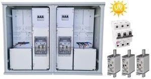 - 2 x Zabezpieczenie przedlicznikowe: rozłącznik bezpiecznikowy RBK00-160A z wkładkami 3x50A,