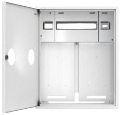 - Drzwiczki: Zamykane na zamek patentowy, wyposażone w okienko umożliwiające odczyt licznika bez otwierania drzwiczek.