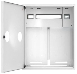 Rozdzielnica jest odpowiednia do zastosowania w instalacjach elektrycznych, zapewniając miejsce na montaż licznika oraz niezbędnych zabezpieczeń.