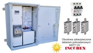 Rozdzielnia jest wyposażona w 3 fazowy układ pomiarowy wraz kompletnymi zabezpieczeniami połączony zgodnie ze standardami TAURON.