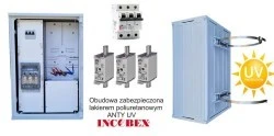 Rozdzielnica dzięki powłoce z lakieru UV posiada wysoką odporność na promieniowanie UV nie jest wrażliwa na długotrwałe działanie promieni słonecznych tak jak PVC lub ABS.