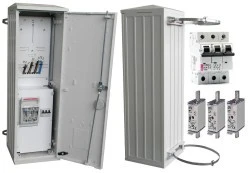 - 1 x Zabezpieczenie przedlicznikowe: rozłącznik bezpiecznikowy RBK00-160A z wkładkami 3x50A,