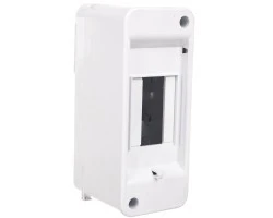 Obudowa natynkowa pod aparature modułową, z miejscem na dwa moduły (1x2S) oraz możliwością umieszczenia dwóch plomb po przekątnych rogach obudowy, wykonana z tworzywa ABS charakteryzującego się wysoką odpornością mechaniczną, w kolorze białym,ze stopniem ochrony IP30, bez klapki, z zaciskami N+PE. Obudowa jest testowana i certyfikowana zgodnie z normą PN-EN 62208:2011.