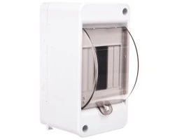 Obudowa natynkowa pod aparature modułową, z miejscem na trzy moduły (1x3S) oraz możliwością umieszczenia dwóch plomb po przekątnych rogach obudowy, wykonana z tworzywa ABS charakteryzującego się wysoką odpornością mechaniczną, w kolorze białym, ze stopniem ochrony IP40 i z samoblokującą się klapką otwieraną do góry, przystosowaną do plombowania w kolorze transparentnym - dymnym, z zaciskami N+PE. Obudowa jest testowana i certyfikowana zgodnie z normą PN-EN 62208:2011.