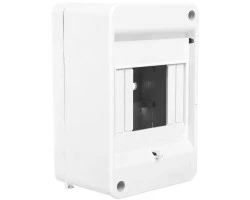 Obudowa natynkowa pod aparature modułową, z miejscem na cztery moduły (1x4S) oraz możliwością umieszczenia dwóch plomb po przekątnych rogach obudowy, wykonana z tworzywa ABS charakteryzującego się wysoką odpornością mechaniczną, w kolorze białym,ze stopniem ochrony IP30, bez klapki, z zaciskami N+PE. Obudowa jest testowana i certyfikowana zgodnie z normą PN-EN 62208:2011.