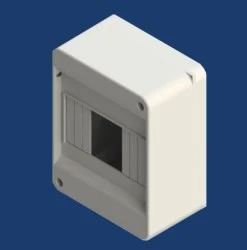 Obudowa natynkowa pod aparature modułową, z miejscem na pięć modułów (1x5S) oraz możliwością umieszczenia dwóch plomb po przekątnych rogach obudowy, wykonana z tworzywa ABS charakteryzującego się wysoką odpornością mechaniczną, w kolorze białym, ze stopniem ochrony IP30, bez klapki i zacisków N+PE. Obudowa jest testowana i certyfikowana zgodnie z normą PN-EN 62208:2011.