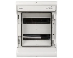 Rozdzielnica została wyposażona w specjalną ochronę przed dotykiem. Dzięki temu jest bezpieczniejsza od innych podobnych tego typu. Stosunkowo niewielkie rozmiary sprawiają, że szafka nie zajmuje zbyt dużo miejsca. W rozdzielnicy jest miejsce na dwa rzędy, w których w sumie można umieścić 24 moduły. Szafka została wyposażona w jedną parę drzwi, które zapewniają bezpieczeństwo i ochronę przed wilgocią. Dzięki stopniu ochrony IP65 szafkę można zamontować zarówno wewnątrz, jak i na zewnątrz budynku, a dzięki szybce zamontowanej w drzwiach, z łatwością można sprawdzić czy żaden z modułów nie zmienił swojego położenia. Produkt posiada wymagane prawem atesty.