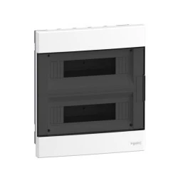 Rozdzielnice Easy9 EU, dostępne w wersjach natynkowych i podtynkowych. Zapewniają solidną ochronę dzięki II klasie izolacji. Wytrzymałość mechaniczna IK07 oraz stopień ochrony IP40 (IP30 - otwarte drzwi) chronią zamontowaną aparaturę. Montaż jest uproszczony dzięki dwóm blokom zaciskowym - uziemiającemu i neutralnemu - dołączonym do zestawu.
