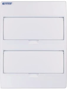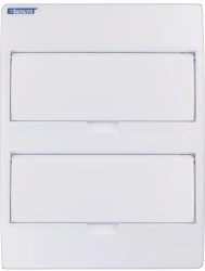 Obudowa podtynkowa pod aparature modułową, dwurzędowa z miejscem na 24 moduły(2x12) przystosowana do plombowania, wykonana z tworzywa ABS charakteryzującego się wysoką odpornością mechaniczną, w kolorze białym, ze stopniem ochrony IP40, posiadająca samoblokującą klapkę ochronną - otwieraną do góry, w kolorze białym, z metalową szyną TH, którą można demontować, oraz kompletem listw zaciskowych N+PE. Tylni korpus zawiera demontowalne zatyczki ułatwiając wprowadzenie kabli oraz wypusty, do których można zamocować przewód przy pomocy opaski zaciskowej, przystosowany do montażu we wnęce lub do regipsów dzięki zestawowi montażowemu (Kod ENE-00397), odpowiednia głębokość zapewnia dużo miejsca dla przewodów pod szyną TH. Obudowa jest testowana i certyfikowana zgodnie z normą PN-EN 62208:2011.