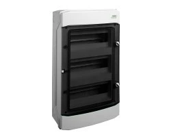 Obudowa posiada jeden do czterech rzędów, od 4 do 48 modułów. Dostarczana jest z drzwiami przezroczystymi. Dostawa składa się z obudowy, drzwi, szyn TH-35 mm, zacisków N+PE, przedniej pokrywy z wycięciami pod aparaty, zaślepki, elementów do montażu.