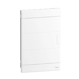 Rozdzielnice Easy9 EU, dostępne w wersjach natynkowych i podtynkowych. Zapewniają solidną ochronę dzięki II klasie izolacji. Wytrzymałość mechaniczna IK07 oraz stopień ochrony IP40 (IP30 - otwarte drzwi) chronią zamontowaną aparaturę. Montaż jest uproszczony dzięki dwóm blokom zaciskowym - uziemiającemu i neutralnemu - dołączonym do zestawu.