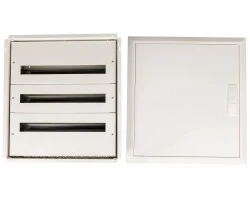 Rozdzielnica modułowa w kolorze białym o numerze RAL 9010 posiada 3 rzędy, który każdy zawiera 24 moduły, co daje łączną liczbę 72 modułów. Obudowa produktu została wykonana z wysokiej klasy stali, która dzięki swojej solidności może być użytkowana przez wiele lat. Rozdzielnica została wyposażona w zamknięta pokrywę, a także standardową dla tych urządzeń szynę DIN o szerokości 35 mm. Dodatkowo produkt ma zaciski śrubowe typu PE/N. Stopień ochrony IP30 rozdzielnicy wskazuje nam, że powinna ona być montowana wewnątrz budynków. Ponadto została wykonana w I klasie ochronności.