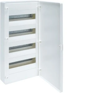 Rozdzielnica modułowa została wykonana z wysokiej klasy tworzywa sztucznego, w kolorze białym o numerze RAL 9010. Posiada ona 4 rzędy, z 12 modułami na każdym z nich. Montuje się ją natynkowo, a stopień ochrony IP40 informuje nas, że powinna ona pracować w miejscach nienarażonych na wilgoć i pył.