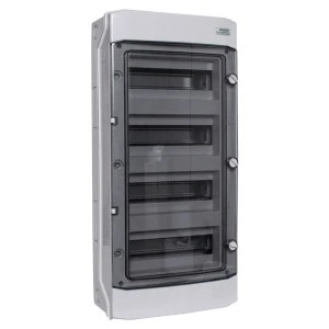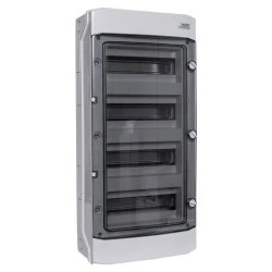Obudowa posiada jeden do czterech rzędów, od 4 do 48 modułów. Dostarczana jest z drzwiami przezroczystymi. Dostawa składa się z obudowy, drzwi, szyn TH-35 mm, zacisków N+PE, przedniej pokrywy z wycięciami pod aparaty, zaślepki, elementów do montażu.