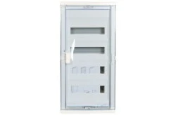 Rozdzielnica modułowa RWN 4x12 to podtynkowa skrzynka rozdzielcza przeznaczona do zabudowy instalacji niskiego napięcia w obiektach mieszkalnych i komercyjnych; model 602424 wyposażono w przezroczyste drzwi ułatwiające podgląd stanu aparatów.