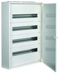 Rozdzielnica posiada również perforowane wejścia kablowe: górne i dolne, a także szyny DIN, między którymi odległość wynosi 150 mm. Produkt jest częścią serii FW2 i jest wyposażony w 4 rzędy, który każdy z nich posiada 24 moduły.