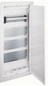 Rozdzielnica modułowa 5x12 podtynkowa z płytą montażową i gniazdami 3x230V Volta VU60NWP to podtynkowe urządzenie o wymiarach 885 mm długości, przeznaczone do montażu 5 rzędów po 12 modułów.