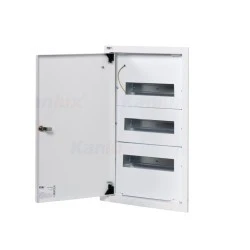 Rozdzielnica metalowa podtynkowa z szynami DIN; liczba modułów 3x12P; liczba rzędów: 3; prąd znamieniowy 63A; IP30; I klasa izolacji.