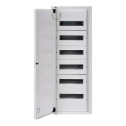 Rozdzielnica metalowa, Typ: DBA, Częstotliwość znamionowa [Hz]: 50, Długość [mm]: 375, Klasa ochronności przed porażeniem elektrycznym: I, Kolor: biały, Kolor drzwi: biały, Liczba modułów: 6x12P, Materiał: żelazo, Miejsce montażu: do nadbudowania na ścianie, Napięcie znamionowe [V]: 230/400 AC, Prąd znamionowy [A]: 63, Stopień IP: 30, Szerokość [mm]: 115, Wysokość [mm]: 982, Norma: PN-EN 62208, Liczba rzędów: 6, Kąt otwarcia drzwi [°]: 120.