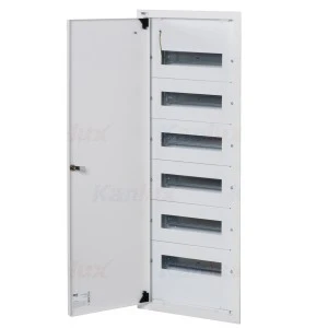 Rozdzielnica metalowa podtynkowa z szynami DIN; liczba modułów 6x12P; liczba rzędów: 6; prąd znamieniowy 63A; IP30; I klasa izolacji.