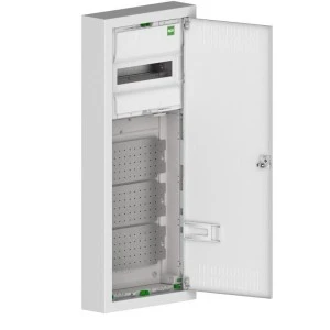 Zawiera zestaw do uniwersalnego montażu w ścianie m.in. łapy metalowe do muru, spinkę do łączenia rozdzielnic w pionie i poziomie.