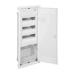 Rozdzielnica wyposażona w gniazdo zasilające 16A/250V Zawiera zestaw do uniwersalnego montażu w ścianie m.in. łapy metalowe do muru, spinkę do łączenia rozdzielnic w pionie i poziomie.