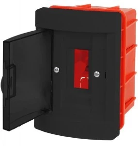 Rozdzielnica 2-modułowa podtynkowa w kolorze czarnym.