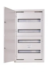 Rozdzielnica niskiego napięcia przeznaczona do montażu podtynkowego wewnątrz budynków, umożliwiająca instalację aparatury modułowej w układzie 4x18 modułów. Wersja wyposażona w zamek do zabezpieczenia dostępu do pola rozdzielczego.