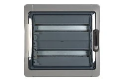 - Materiał obudowy: tworzywo sztuczne (polistyren odporny na udary); drzwi transparentne z poliwęglanu.