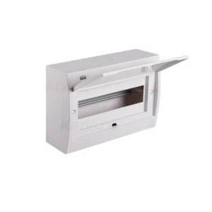 Rozdzielnica natynkowa,12P; In 63A; wytrzymałość na żar dla obudowy wynosząca 650°C, mogą być stosowane wyłącznie na powierzchniach niepalnych; IK07, IP30.