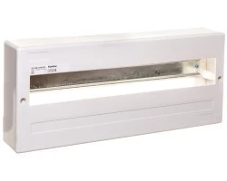 Rozdzielnica z listwami DIN, Un 400V~;50Hz, IP 30, zakres temp. otoczenia -25÷55°C, 18 pól, IK 06, max dopuszczalna temp. obudowy 70°C, wytrzymałość obudowy na żar 850°C.