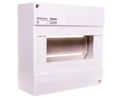 Rozdzielnica z listwami DIN, Un 400V~;50Hz, IP 30, zakres temp. otoczenia -25÷55°C, 8 pól, IK 06, max dopuszczalna temp. obudowy 70°C, wytrzymałość obudowy na żar 850°C.