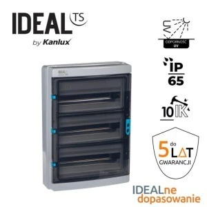 Rozdzielnica serii, Długość [mm]: 595, Szerokość [mm]: 150, Wysokość [mm]: 415, Klasa ochronności przed porażeniem elektrycznym: II, Kolor: szary, Liczba modułów: 3x18P, Miejsce montażu: do nadbudowania na ścianie, Miejsce zastosowania: wewnątrz i na zewnątrz, Napięcie znamionowe [V]: 1500 AC; 1500 DC, Stopień IK: 10, Stopień IP: 65, Zakres temperatury otoczenia, na którą może być narażony wyrób [°C]: -25+40, Norma: PN-EN 62208, Liczba rzędów: 3.