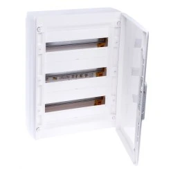 Prezentowana rozdzielnica modułowa została wytworzona w kolorze białym. Materiałem obudowy jest wysokiej jakości tworzywo sztuczne. IP40, to stopień ochrony nadany przez producenta. Rozdzielnica może pracować jedynie w pomieszczenia zadaszonych, w których nie będzie narażona na działanie warunków atmosferycznych jak: woda, wilgoć oraz kurz i pyły. Będzie odporna na działanie ciał obcych o średnicy 1 mm oraz większe. Urządzenie posiada 3 rzędy i 18 modułów. Pokrywa jest zamykana. Producent zaleca wykonanie montażu powierzchniowego. Jej wysokość została określona na 600 mm, szerokość na 450 mm, a głębokość na 150 mm. Rozdzielnicę można zamontować na szynie DIN. Nie ma możliwości rozbudowania sprzętu. Wytworzył ją LEGRAND, który ekspertem w zakresie produktów i systemów instalacji elektrycznych oraz sieci informatycznych w budownictwie mieszkaniowym, komercyjnym i przemysłowym. Osprzęt jest wielokrotnie testowany i przechodzi wiele prób jakości nim wejdzie do sprzedaży. LEGRAND główną siedzibę posiada we Francji od 1860 roku.