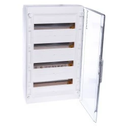 LEGRAND jest nowoczesnym przedsiębiorstwem, które zatrudnia ponad 33 000 pracowników na całym świecie. Firma do produkcji swojej aparatury używa wyłącznie sprawdzonych i wysokiej jakości materiałów. Produkcja odbywa się w ponad 30 fabrykach na całym świecie. Każdy z zakładów wykorzystuje swoje doświadczenie w produkcji i rozwoju asortymentu liczącego ponad 190 000 produktów. Dana rozdzielnica modułowa została wykonana w kolorze białym z najlepszej jakości tworzywa sztucznego. Posiada cztery rzędy oraz 18 modułów. Pokrywa w tym osprzęcie jest przezroczysta, zamykana. Producent zaleca wykonanie montażu powierzchniowego. Jej wysokość wynosi 750 mm, szerokość 450 mm, a głębokość 150 mm. Osprzęt można zainstalować na szynie DIN. Nie posiada on płyty montażowej, nie ma również możliwości rozbudowy rozdzielnicy. Producent wyposażył ją w stopień ochrony określony na IP40. Rozdzielnica powinna pracować w miejscach zadaszonych, gdzie nie jest narażona na działanie wody, wilgoci, ponieważ nie jest na nie odporna.