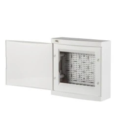 Rozdzielnica natynkowa, In 63A; wytrzymałość na żar dla obudowy wynosząca 650°C, mogą być stosowane wyłącznie na powierzchniach niepalnych; IK07, IP30.