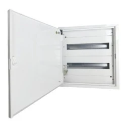 Wyposażona w dwa rzędy szyn DIN z możliwością instalacji 18 modułów na jednej szynie. Dno rozdzielnicy idealnie dopasowuje się do ściany.