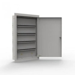 Wyposażona w cztery rzędy szyn DIN z możliwością instalacji 24 modułów na jednej szynie. Dno rozdzielnicy idealnie dopasowuje się do ściany.