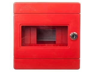 Rozdzielnica natynkowa modułowa 7 modułów IP44 180X180X100, czerwona z zamkiem i szybą, ALFA 3 Z
