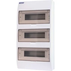 Rozdzielnica natynkowa INCOBEX S-36 to kompaktowe i estetyczne rozwiązanie do domowych instalacji elektrycznych, mieszczące 3 rząd z 12 modułami.