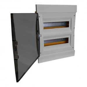 Rozdzielnica podtynkowa 24 modułowa 970.24 Marlanvil Rozdzielnice serii 970 oferują rozwiązania montażu od 4 do 36 modułów. Modele dostępne są z przyciemnionymi lub białymi drzwiami. Rozdzielnice wykonane są w estetycznym stylu i idealnie wpasują się w nowoczesne wnętrze. System montażowy szyny DIN pozwala na jej zainstalowanie u góry lub w dolnej części rozdzielnicy. Przedni panel rozdzielnicy został wykonany z termoodpornych technopolimerów. Drzwi wykonane z wytrzymałego, barwionego polikarbonatu. Zółta (RAL 1017) podstawa wykonana z przeciwwstrząsowego technopolimeru. Rozdzielnice serii 970 zapewniają wysoką odporność na chemikalia i warunki atmosferyczne. Rozdzielnica jest zabezpieczona przed wstrząsami elektrycznymi. Dołączone wkręty samogwintujące zostały wyprodukowane ze stali nierdzewnej. liczba modułów 12/26 liczba rzędów 2 możliwość odprowadzenia ciepła 44W stopień ochrony IP40 wymiary 315 x 405 x 24 mm (szerokość x wysokość x głębokość) rozdzielnica wystaje od ściany na 24mm kolor podstawy żółty (RAL 1017) kolor frontu obudowy szary kolor drzwi ciemny - przezroczysty materiał obudowa - techonopolimer panel przedni - techonopolimer drzwi - polikarbonat możliwość zamontowania szyny DIN na górze lub dole rozdzielnicy tak odporność na chemikalia i warunki atmosferyczne tak bezhalogenowa tak kraj pochodzenia Włochy zastosowanie wewnętrzne certyfikaty CE producent Marlanvil oznaczenie producenta 970.24 kod EAN 8017521071060