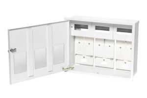 Rozdzielnica wnękowa 3-licznikowa 1-fazowa 18 modułów do plombowania -drzwi z okienkiem i zamkiem ,regulowany kołnierz