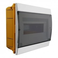Rozdzielnica podtynkowa 8 modułowa 970.08.B Marlanvil Rozdzielnice serii 970 oferują rozwiązania montażu od 4 do 36 modułów. Modele dostępne są z przyciemnionymi lub białymi drzwiami. Rozdzielnice wykonane są w estetycznym stylu i idealnie wpasują się w nowoczesne wnętrze. System montażowy szyny DIN pozwala na jej zainstalowanie u góry lub w dolnej części rozdzielnicy. Przedni panel rozdzielnicy został wykonany z termoodpornych technopolimerów. Drzwi wykonane z wytrzymałego, barwionego polikarbonatu. Zółta (RAL 1017) podstawa wykonana z przeciwwstrząsowego technopolimeru. Rozdzielnice serii 970 zapewniają wysoką odporność na chemikalia i warunki atmosferyczne. Rozdzielnica jest zabezpieczona przed wstrząsami elektrycznymi. Dołączone wkręty samogwintujące zostały wyprodukowane ze stali nierdzewnej. liczba modułów 8/10 (po wycięciu maskownic) liczba rzędów 1 możliwość odprowadzenia ciepła 20W stopień ochrony IP40 wymiary 230 x 200 x 22 mm (szerokość x wysokość x głębokość) rozdzielnica wystaje od ściany na 22mm kolor podstawy żółty (RAL 1017) kolor frontu obudowy biały kolor drzwi ciemny - przezroczysty materiał obudowa - techonopolimer panel przedni - techonopolimer drzwi - polikarbonat możliwość zamontowania szyny DIN na górze lub dole rozdzielnicy tak odporność na chemikalia i warunki atmosferyczne tak bezhalogenowa tak kraj pochodzenia Włochy zastosowanie wewnętrzne certyfikaty CE producent Marlanvil oznaczenie producenta 970.08.B kod EAN 8017521070933