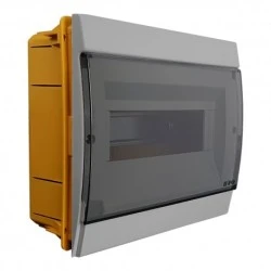 Rozdzielnica podtynkowa 8 modułowa 970.08 Marlanvil Rozdzielnice serii 970 oferują rozwiązania montażu od 4 do 36 modułów. Modele dostępne są z przyciemnionymi lub białymi drzwiami. Rozdzielnice wykonane są w estetycznym stylu i idealnie wpasują się w nowoczesne wnętrze. System montażowy szyny DIN pozwala na jej zainstalowanie u góry lub w dolnej części rozdzielnicy. Przedni panel rozdzielnicy został wykonany z termoodpornych technopolimerów. Drzwi wykonane z wytrzymałego, barwionego polikarbonatu. Zółta (RAL 1017) podstawa wykonana z przeciwwstrząsowego technopolimeru. Rozdzielnice serii 970 zapewniają wysoką odporność na chemikalia i warunki atmosferyczne. Rozdzielnica jest zabezpieczona przed wstrząsami elektrycznymi. Dołączone wkręty samogwintujące zostały wyprodukowane ze stali nierdzewnej. liczba modułów 8/10 (po wycięciu maskownic) liczba rzędów 1 możliwość odprowadzenia ciepła 20W stopień ochrony IP40 wymiary 230 x 200 x 22 mm (szerokość x wysokość x głębokość) rozdzielnica wystaje od ściany na 22mm kolor podstawy żółty (RAL 1017) kolor frontu obudowy szary kolor drzwi ciemny - przezroczysty materiał obudowa - techonopolimer panel przedni - techonopolimer drzwi - polikarbonat możliwość zamontowania szyny DIN na górze lub dole rozdzielnicy tak odporność na chemikalia i warunki atmosferyczne tak bezhalogenowa tak kraj pochodzenia Włochy zastosowanie wewnętrzne certyfikaty CE producent Marlanvil oznaczenie producenta 970.08 kod EAN 8017521070926
