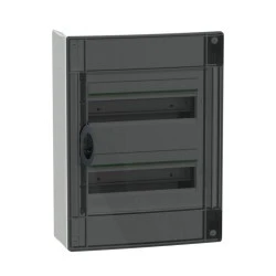 Obudowy oferują drzwi pełne białe, przezroczyste szklane z ramą metalową (wersja 24 modułowa) oraz przydymione wykonane z tworzywa sztucznego (wersja 13 i 18 modułów).