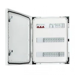 Rozdzielnica przyłączeniowa DC+AC IP 66 z ogranicznikiem przepięć Noark 1000V typu 1+2, 8x łańcuch PV, 8x MPPT // ogr. AC Noark typ 1+2, 100A 3F, FR 100A, syg. faz