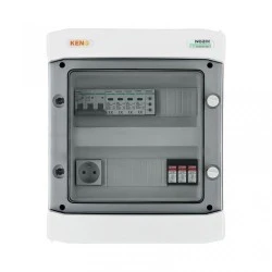 Rozdzielnica przyłączeniowa DC+AC z ogranicznikiem przepięć 1000V typu 2, 1x łańcuch PV, 1x MPPT // ogr. AC typ 2, 16A 3-F, sygn. faz + Gniazdko